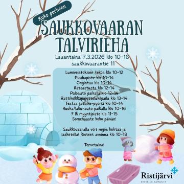 ❄️ Talven hauskin päivä lähestyy! ❄️ Saukkovaaran talvirieha lauantaina 7.3.2026 klo 10–16 💙 Ristijärven Saukkovaaralla vietetään koko perheen...