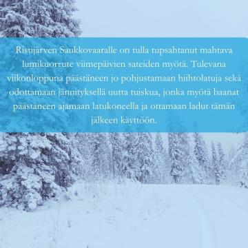 ❄️ LUNTA ❄️ Ristijärven Saukkovaaralle on tulla tupsahtanut mahtava lumikuorrute viimepäivien sateiden myötä. Tulevana viikonloppuna päästäneen jo...