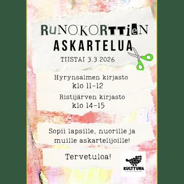 HYRYNSALMEN & RISTIJÄRVEN KIRJASTOISSA ASKARRELLAAN 3.3.2026. Tervetuloa askastelemaan sana- ja kuvataidetta Hyrynsalmen ja Ristijärven kirjastoihin...