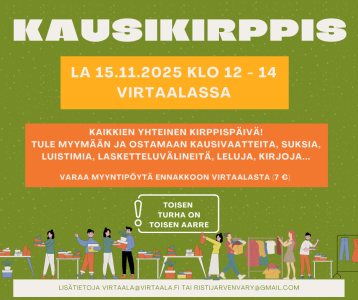 Lauantaina 15.11.2025 klo 12-14 Monitoimikeskus Virtaalassa kausikirppis!