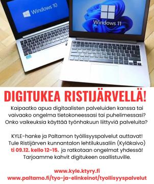 DIGITUKEA RISTIJÄRVELLÄ Kaipaatko apua digitaalisten palveluiden kanssa tai vaivaako ongelma tietokoneessasi tai puhelimessasi? Onko vaikeuksia...