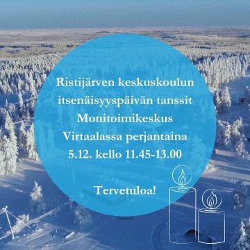 Ristijärven keskuskoulu: Perinteiset itsenäisyyspäivän tanssit Monitoimikeskus Virtaalassa perjantaina 5.12. kello 11.45-13.00 💙 Toivotamme kaikki...