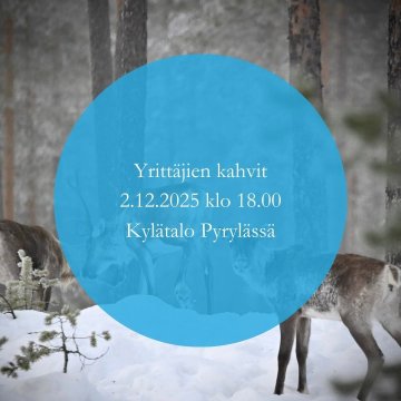 Hei yrittäjä! Tervetuloa yrittäjien kahveille 2.12.2025 klo 18.00 Kylätalo Pyrylään! Yrittäjäkahvit 2.12.2025 Ohjelma: 18:00 Tilaisuuden avaus,...