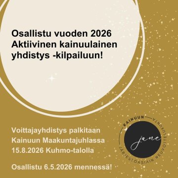 Nyt etsitään vuoden 2026 aktiivista kainuulaista yhdistystä Kainuun järjestöasiainneuvottelukunta Kainuun Jane etsii jälleen vuoden aktiivista...