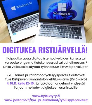 Digitukea Ristijärvellä 💙 Kaipaatko apua digitaalisten palveluiden kanssa tai vaivaako ongelma tietokoneessasi tai puhelimessasi? Onko vaikeuksia...